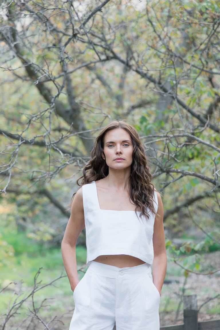 Top de Lino con caída estructurada y escote cuadrado. Su parte principal se encuentro en nuestro plexo, nos invita a encender nuestro sol, por esto lleva el nombre Helios.